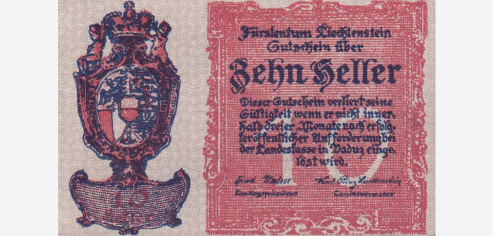 Liechtenstein Billet de 10 Heller (1920) - Wor: P-1a